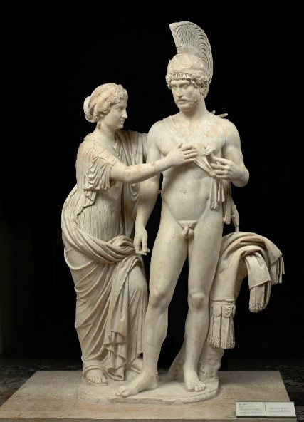 Si on peut considérer, en s’appuyant sur le lexique latin, qu’il y a, dans les textes, coïncidence entre beauté physique et beauté morale, et, inversement, entre laideur physique et laideur morale 2, cependant, d’après ces mêmes textes, il existe plusieurs types de beauté, dont toutes ne sont pas conditionnées par la conformité à des normes morales. Il en va ainsi de la beauté des pueri delicati, les jeunes esclaves, imberbes, aux cheveux fournis, qui constituent un délice pour les yeux du maître et de ses invités au banquet. Il s’agit ici d’une beauté « à la grecque », inspirée des canons de beauté qu’on peut trouver dans les textes des poètes, des médecins ou des auteurs des dits « romans » grecs : teint éclatant et sain mêlé de blanc et de rouge, peau lisse, blondeur. La beauté attribuée aux héros épiques, notamment celle des jeunes princes troyens qui entourent Énée dans le poème de Virgile, a elle aussi pour modèle la beauté des vaillants héros des épopées grecques.